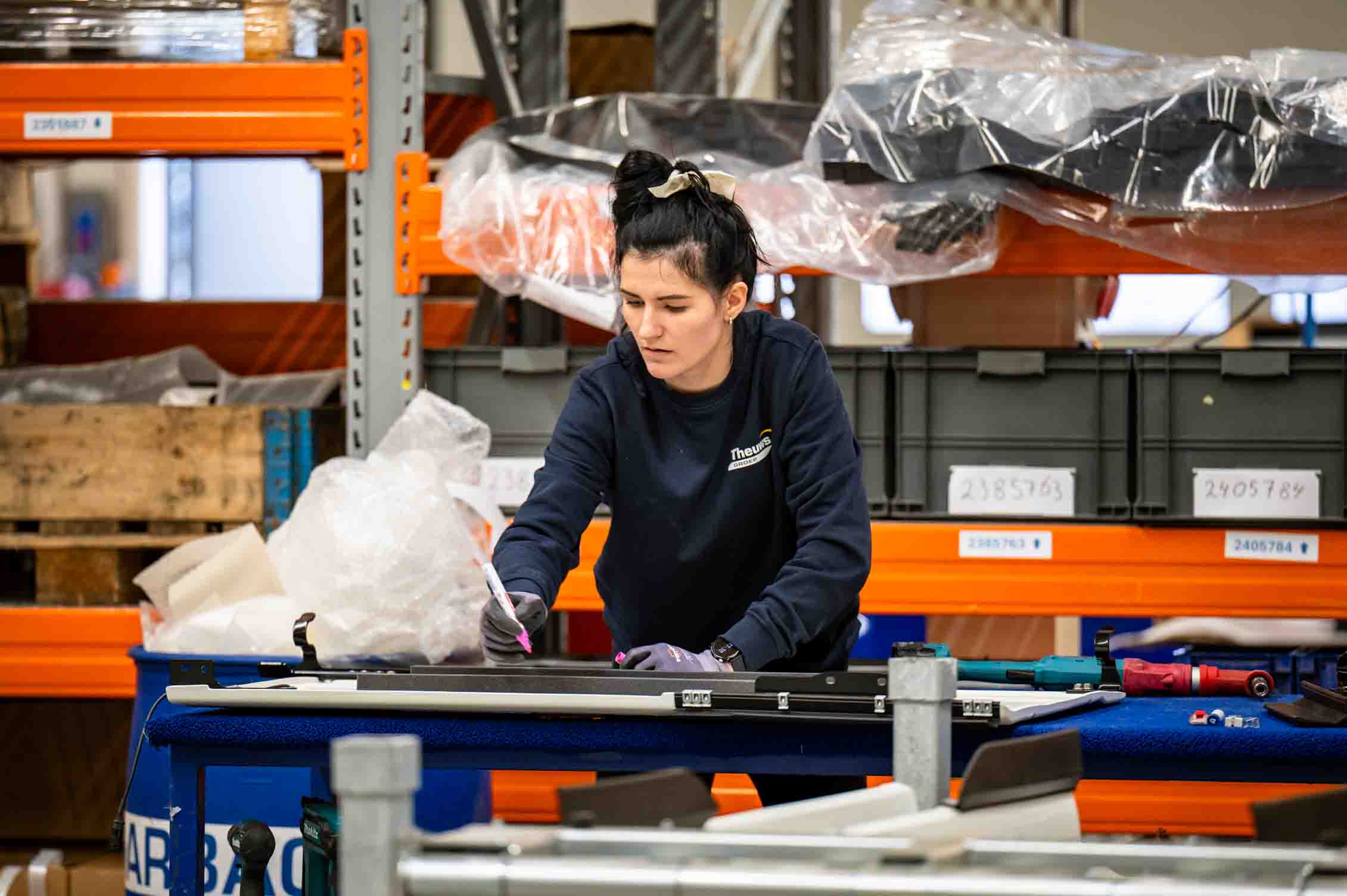 Theuws Assemblage beschikt over een modern warehouse waar zowel mono-delen als eindproducten worden opgeslagen. De opslag is ingericht om flexibel mee te bewegen met productieplanning en afnamepatronen. Door voorraad slim te positioneren, blijven onderdelen beschikbaar wanneer ze nodig zijn, zonder onnodige vertraging of overschotten.